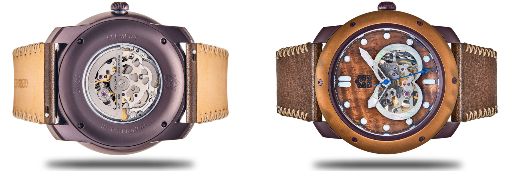 We design our wood watches and hand finish the Koa wood in our small shop in Honolulu. ย We've focused on small batch production so we can guarantee the best quality while providing a wood watch that is truly unique and rare. ย We use only the most amazing "curly" grained Koa from the Big Island...the most rare, beautiful, and expensive. ย We encase ourย Koa in an equally worthy case using a stainless body, bronze bezel, domed sapphire crystal, Japanese automatic movement