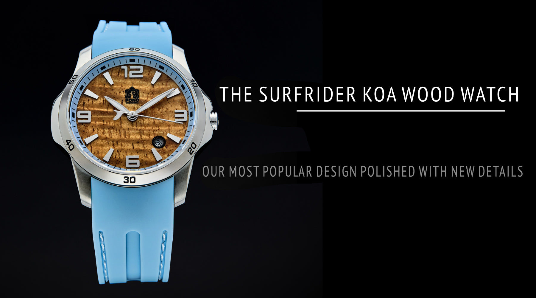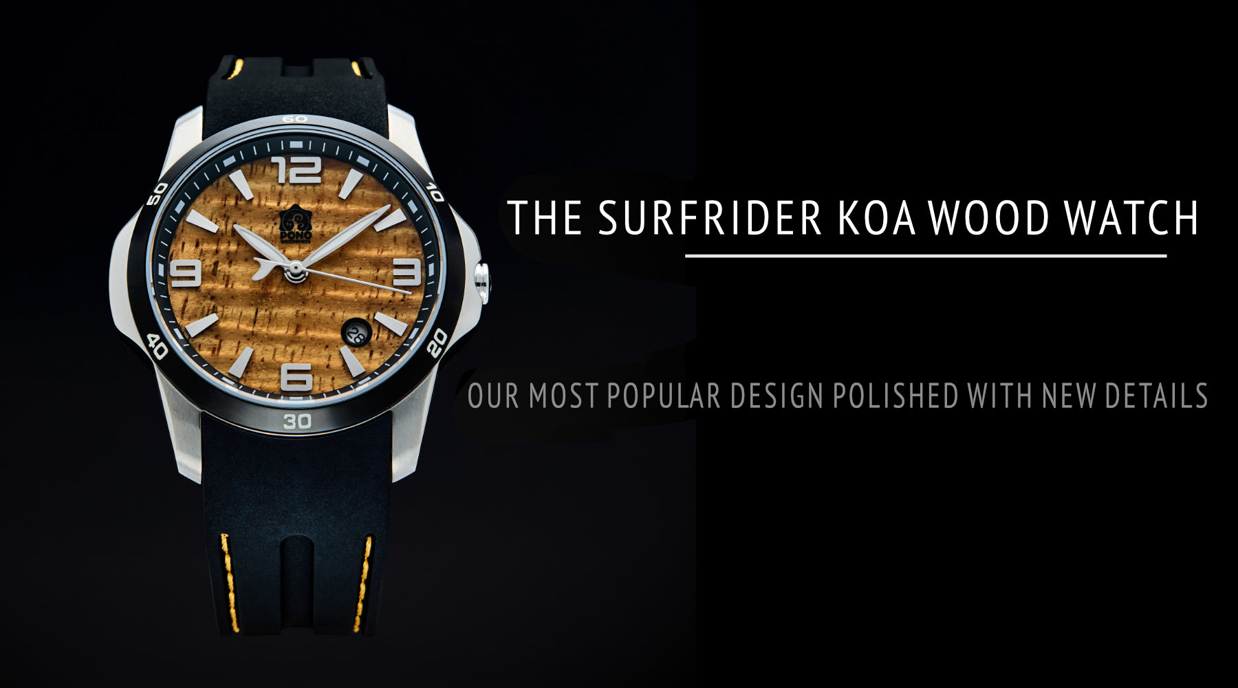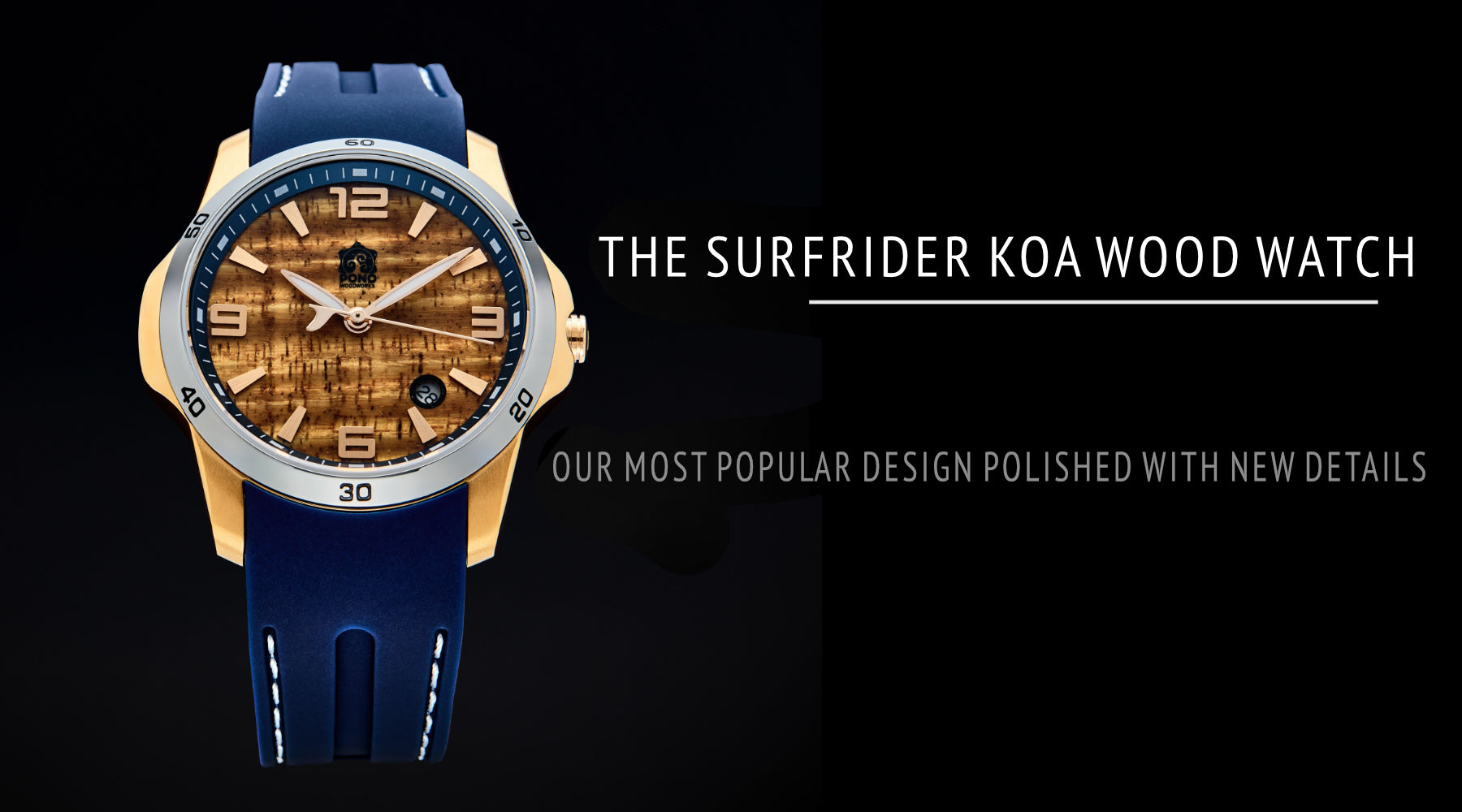 The Surfrider Koa wood watch was designed to compliment your favorite island style adventures while looking on point at your next board meeting (surfboard preferred of course). The original Hawaiians used boards made of Koa to ride the waves and became the first surfriders. When designing our surf watch, my goal was to create a beautifully simple but robust Koa watch that could keep up through your whole day...whether surfing or just lying in the hammock.