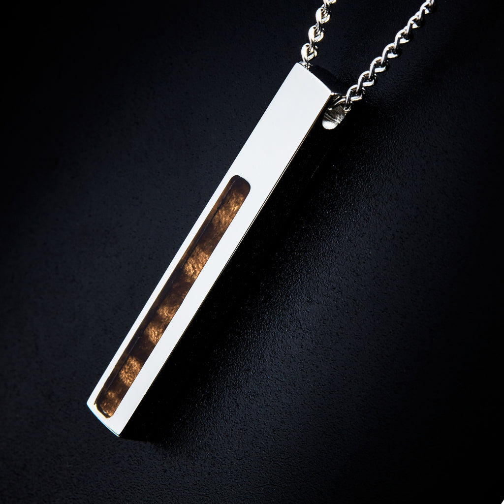 Simple lines and a life-proof stainless design creates a bar pendant you'll wear close to your heart as a reminder of your inner strength. Koa wood has symbolically meant courage or strength stretching back through ancient times.  The Koa tree lent its name and power to the Hawaiian "Koa" or warriors...the fiercest of fighters.