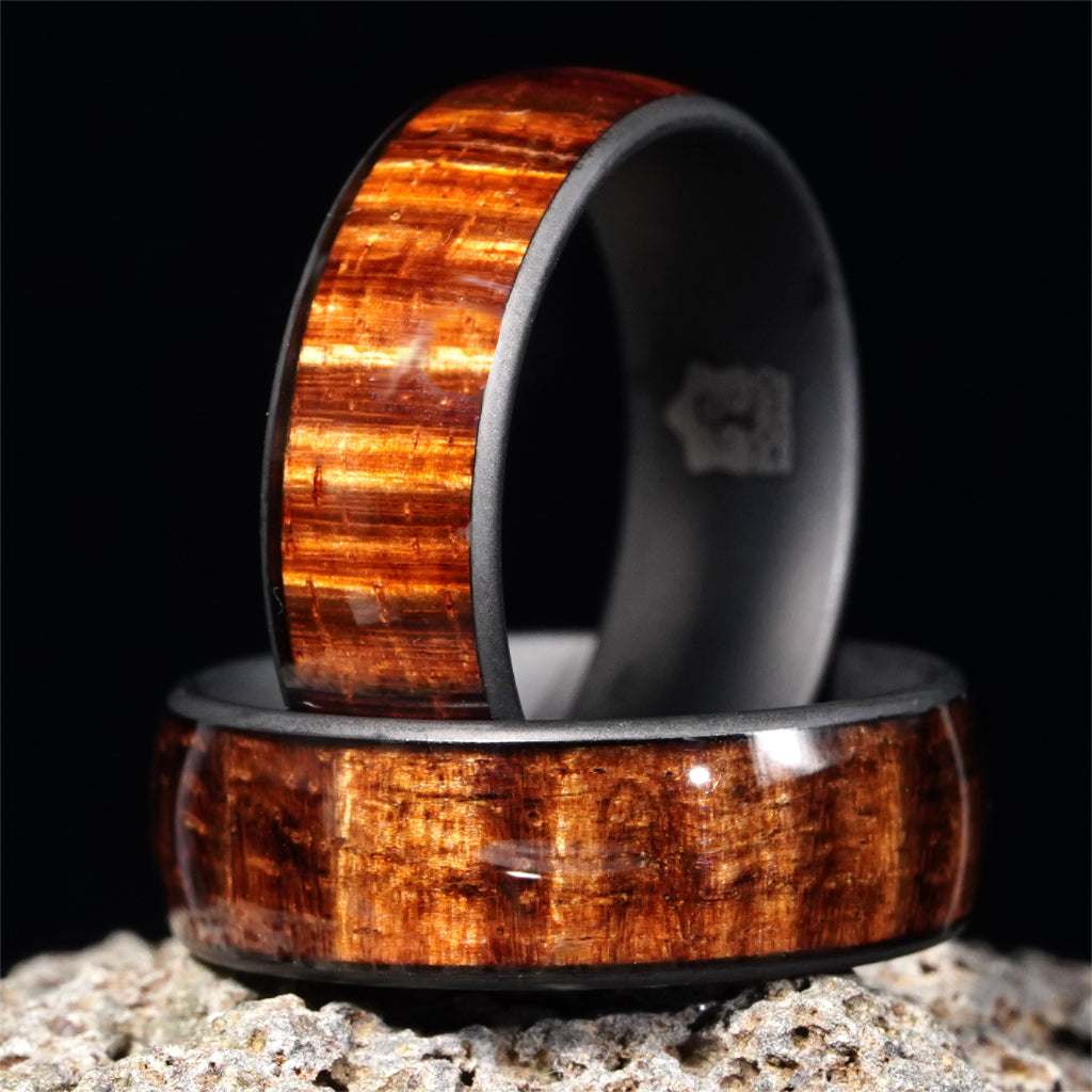 Sandblasted Gunmetal Tungsten Koa Wood Ring (8mm wide)