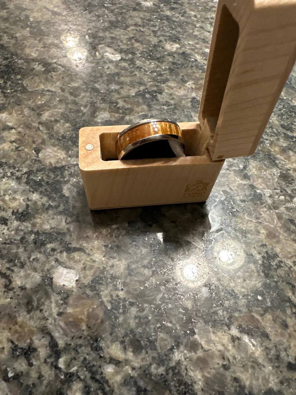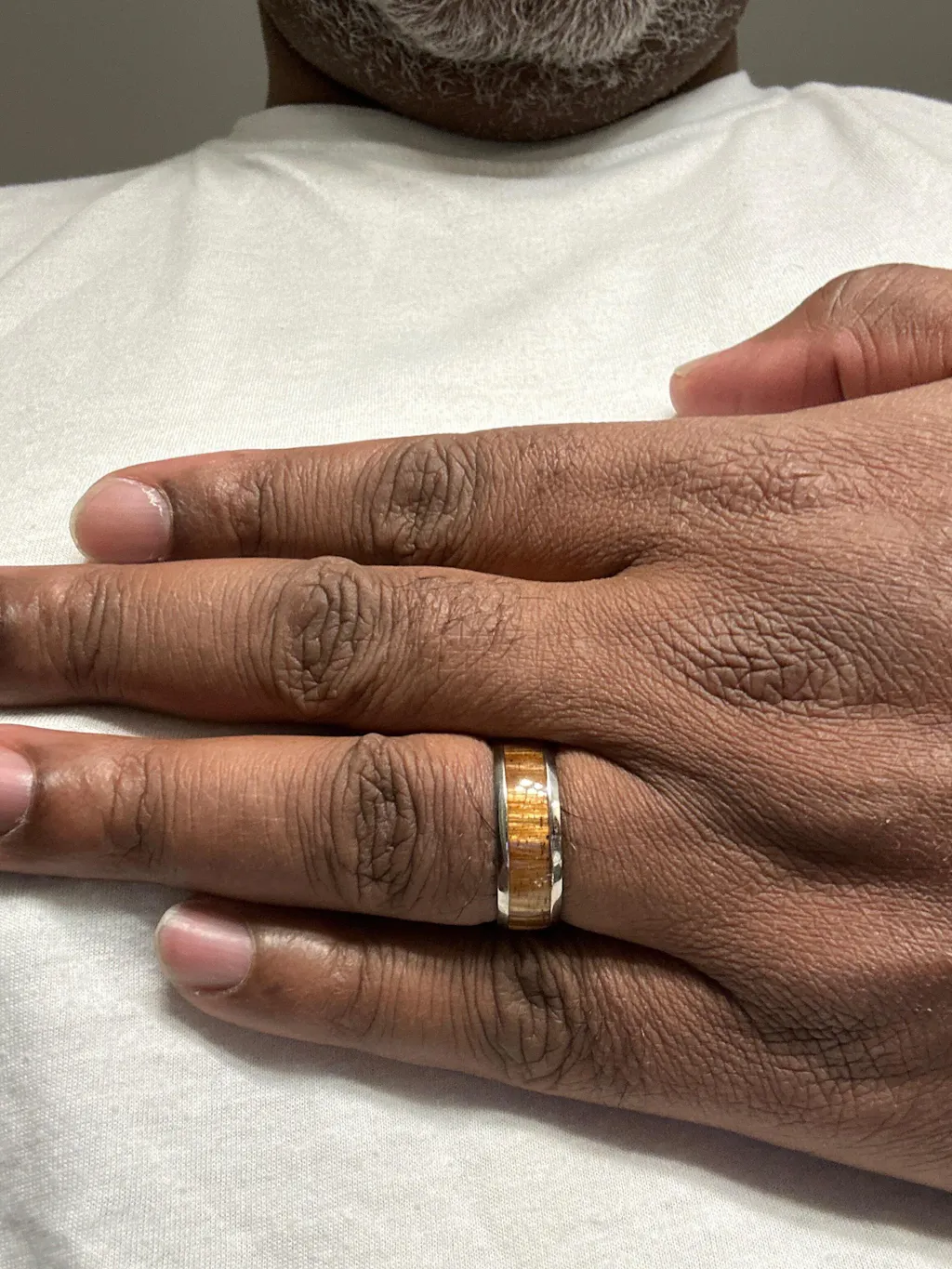 Titanium wood rings are great for those who love a lightweight life proof ring. You'll hardly notice that it's on you finger due to the weight. The resin over the wood inlay also ensures the wood will last a lifetime free from water and whatever abuse you throw at it.